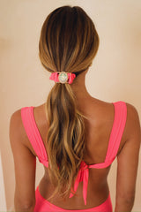 Our 'Scrunchie' is the ultimate accessory for any beach or pool day. It effortlessly elevates your swimwear to an outfit, taking your vacation look to the next level. Trust us, it's a worthy investment to standing out from the crowd! Don't miss out on this perfect addition to any of our bikinis or swimsuits.