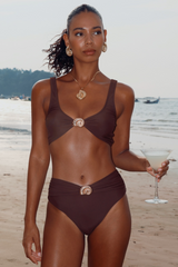 'Luquillo' Coffee Nautilus High Waist Bikini Bottoms
