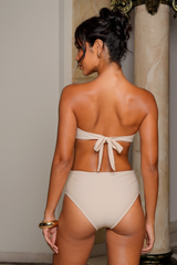 Our 'Bandeau Bikini Top' features adjustable ties for your bust, so you can customise the fit to your liking! The ruching at the front accentuates your shape and lifts your breasts to create the desired cleavage. Designed to make you look and feel fantastic, whether lounging by the pool or playing on the beach. This swimwear will make you stand out in the best way possible!