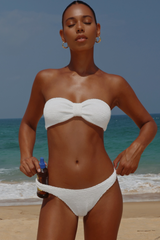 Our ‘Bandeau Bikini Top' is made to slide on easily, for maximum comfort! The knot at the front accentuates your shape and lifts your breasts to create the desired cleavage. Designed to make you look and feel fantastic, whether lounging by the pool or playing on the beach. This swimwear will make you stand out in the best way possible!
