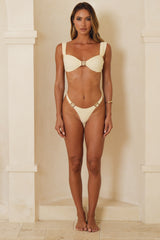 Our ‘Wide Strap Bikini Top' features adjustable ties for your bust, so you can customise the fit to your liking! The ruching at the front accentuates your shape and lifts your breasts to create the desired cleavage. Designed to make you look and feel fantastic, whether lounging by the pool or tanning on the beach. This swimwear will make you stand out in the best way possible!